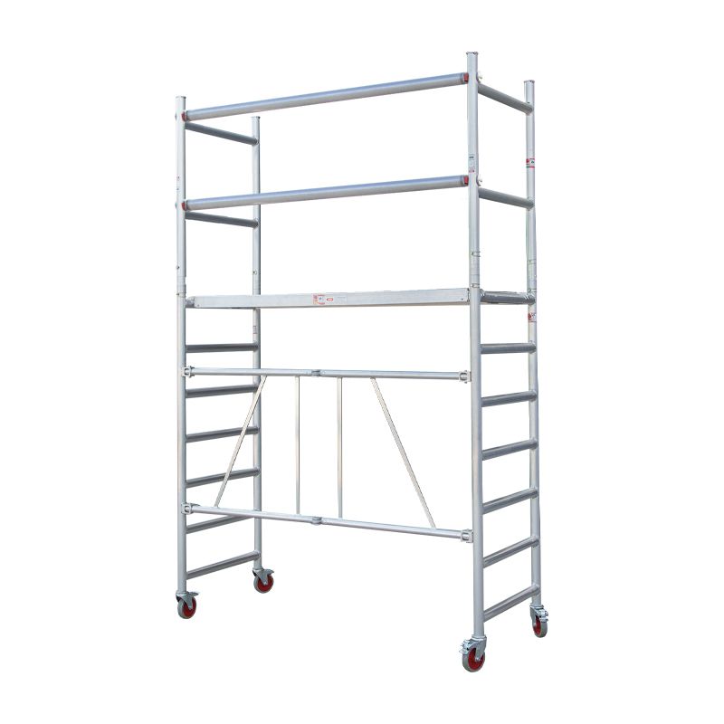 - das Gerüst besteht aus wenigen Elementen: dem fahrbaren Klappgestell und einer bzw. zwei Belagsplatten